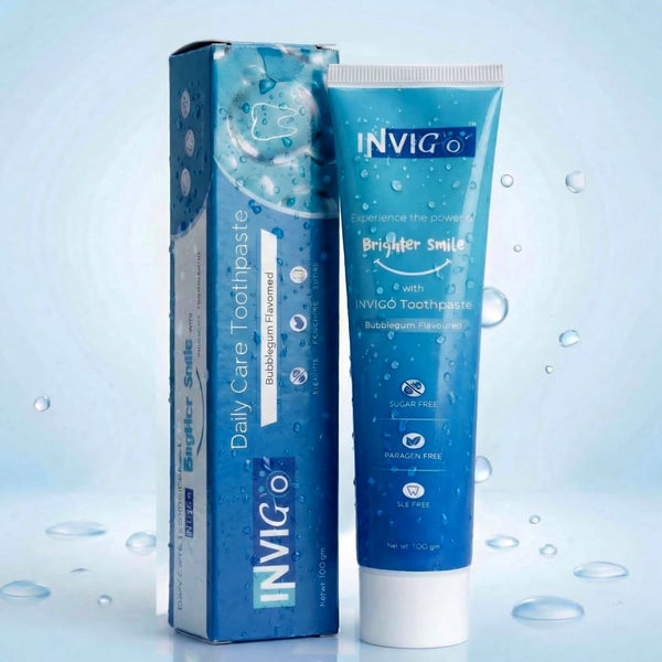 INVIGO BubbleGum Flavored Toothpaste 100g , Sugar Free | SLS Free | Paraben Free | Teeth Whitening + Cavity Protection & Gum Care For Kids, Men & Women Natural Fresh Breath Toothpaste